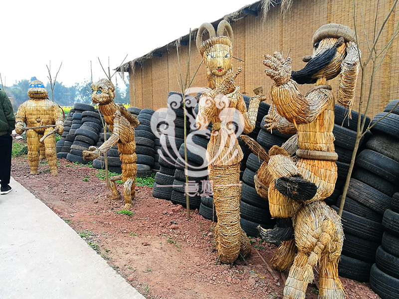 現(xiàn)在的精致稻草人藝術(shù)通常是由專(zhuān)業(yè)美術(shù)老師的造型放樣,然后由焊工師傅焊接出立體造型造型,然后以稻草或者稻草繩為材料編捆制作而成。