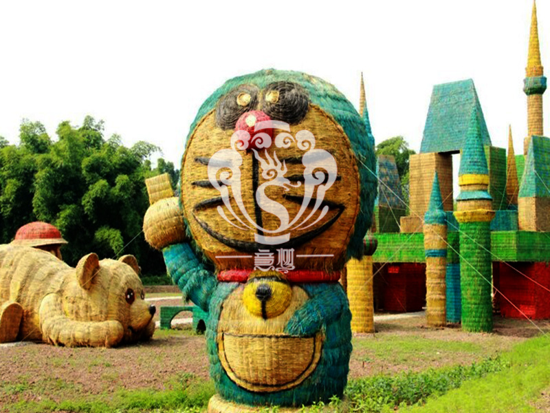 現在的精致稻草人藝術通常是由專業美術老師的造型放樣,然后由焊工師傅焊接出立體造型造型,然后以稻草或者稻草繩為材料編捆制作而成。