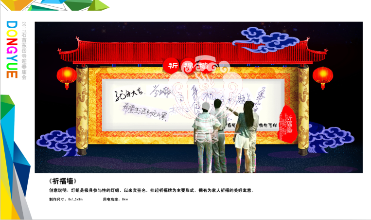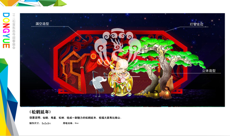 滿懷喜悅,深感榮幸。自貢市意樹文化傳播有限公司通過對湖北荊州石首東岳寺的實地考察,和我們的不懈努力,《湖北荊州石首東岳寺首屆迎春燈會方案》設計工作圓滿完成。我們結合東岳寺特色及氛圍營造亮化區域地形地貌,緊抓“歡慶佳節”的設計主題,把迎春燈會精心打造成2017年迎春的亮點,獻上盛大的視覺歡樂盛宴!