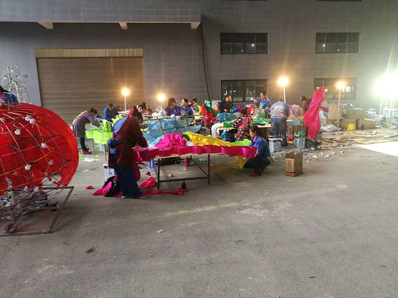國慶剛結束自貢意樹彩燈帶領公司彩燈制作匠人們奔赴異鄉緊張施工中