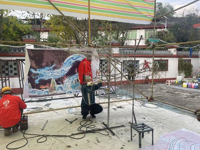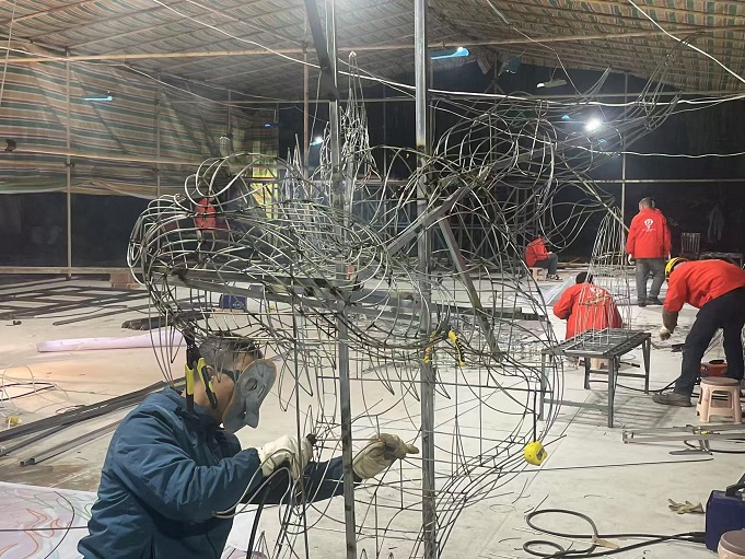意樹彩燈公司2025江油燈會制作現場,團隊正全力以赴制作,敬請期待正式亮燈