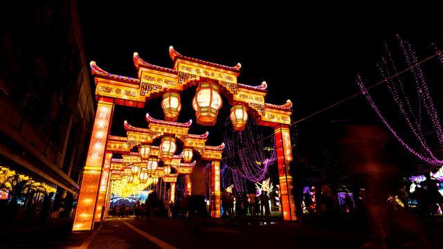 從海寧皮革城入口,進入峽石燈會核心展區,一組組彩燈融合著現代、古典、建筑、海寧文化等不同元素,光彩靈動,獨具匠心,讓人感受到極強的視覺震撼力。