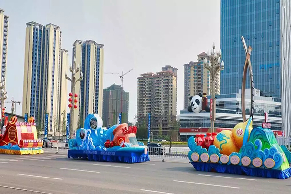 四川瀘州龍馬潭:特色酒企花車巡游 營造濃濃酒博會氛圍