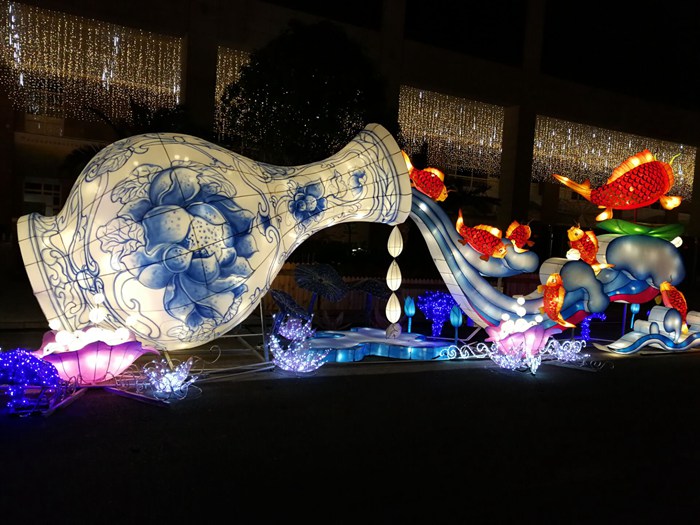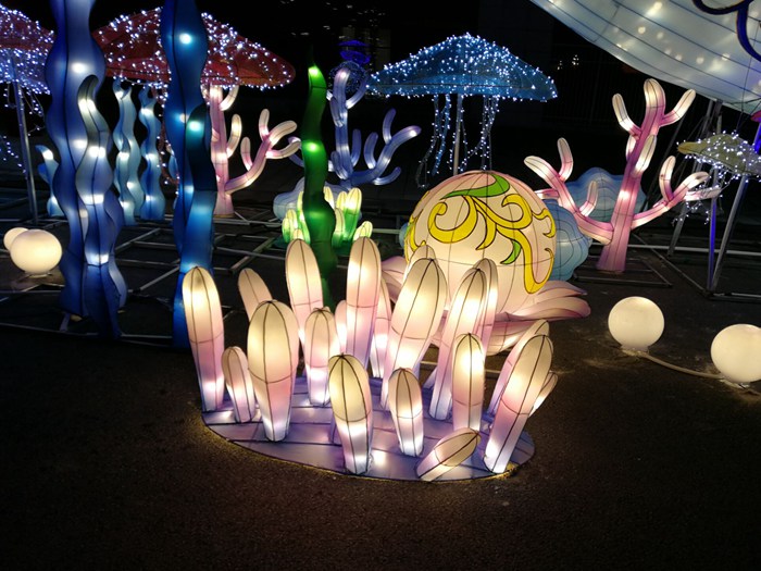 本次燈會制作意樹彩燈從客戶需求出發(fā),將地方文化與彩燈創(chuàng)意深度融合,設(shè)計并制作了各年齡階都喜歡的燈組,有夢幻的卡通燈組、海洋主題燈組,也有傳統(tǒng)的吉祥燈組等。絢麗多彩的貴州安順大興東旅游城燈會定能征服您的感官世界,給您一場如幻是夢的視覺體驗。